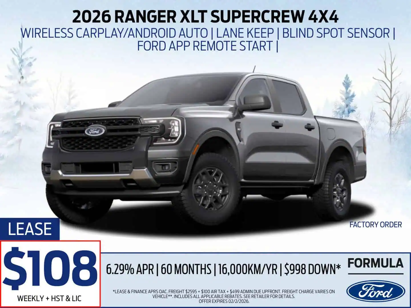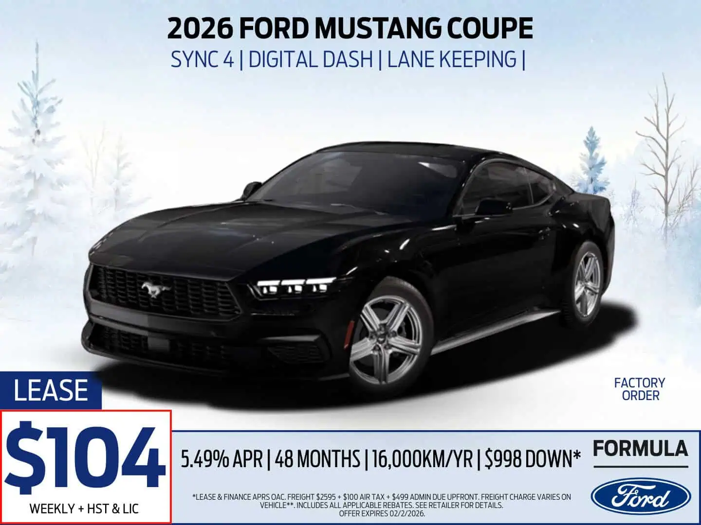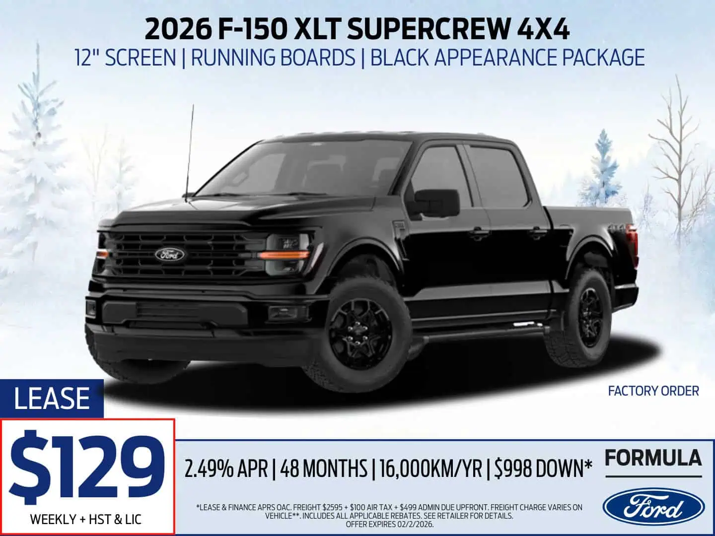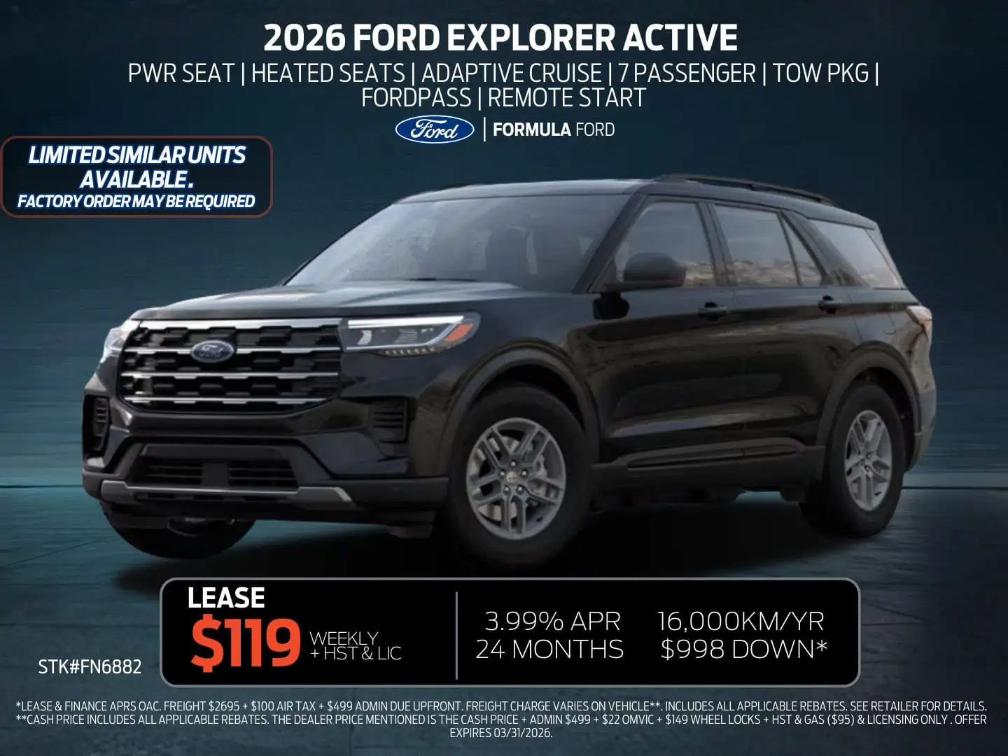 *Lease & Finance APRs OAC. Freight $2595 + $100 Air Tax + $499 Admin Due Upfront. Freight charge varies on vehicle**. Includes all applicable rebates. See Retailer for Details.