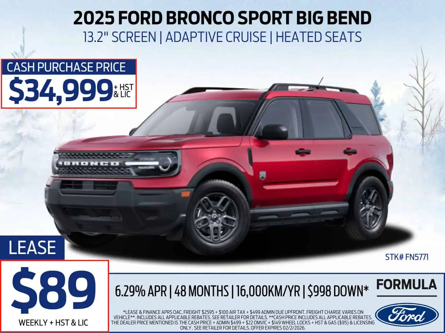 **Cash price includes all applicable rebates. The dealer price mentioned is the cash price + ADMIN $499 + $22 OMVIC + $149 WHEEL LOCKS + hst & GAS ($95) & licensing only . Offer Expires 02/02/2026.